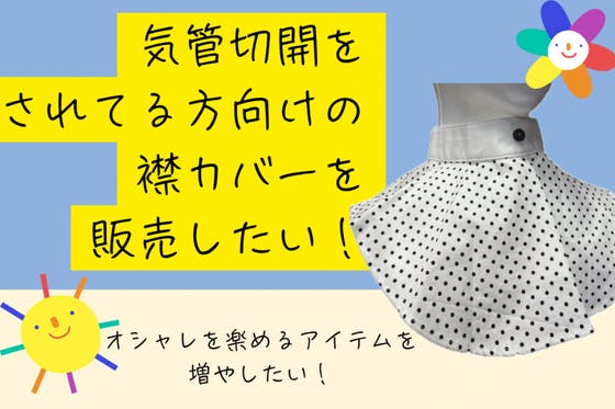 商品化予定の襟カバーは、気管切開をされている方に首元のおしゃれを楽しむアイテムとして使っていただきたく考案しました。 気管切開をしている私の子どもの言葉をきっ...