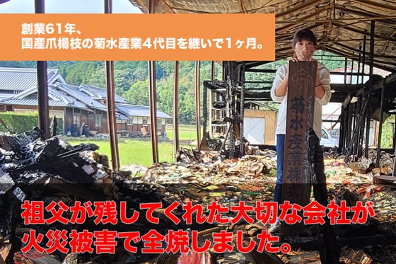 国産爪楊枝の製造で創業61年の菊水産業、4代目として後を継いで1か月…これからと言う時に会社の事務所と作業場と倉庫が全焼いたしました。皆さんの応援を元に這い上が...