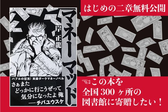 岸正龍です。6月初旬に発刊になる、『バブルの狂気!実録ダークマネーノベル【マネーマッド】』を、全国300ヶ所の図書館に寄贈したいです。僕の身に起こったおカネの怖...