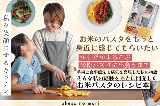 おへその森の初商品「お米のパスタ トルテッリーニ」をお披露目してから2年弱、米粉パスタの魅力をもっと多くの人へ伝えるために、初の書籍にチャレンジ!さらに親子で作...