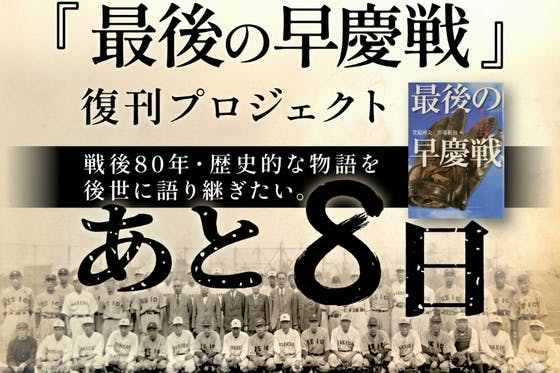 戦後80年、昭和100年、東京六大学野球連盟結成100周年を迎えるいまこそ、祖父の絶版本『最後の早慶戦』を復刊すると同時に電子書籍化し、昭和18年10月16日...