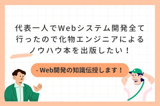 外注すると数億円単位でかかるようなWebサービスを代表一人で設計、開発したので化物エンジニアによるノウハウ本を出版したいです。子供向けに教育を絡めたサービスを提...