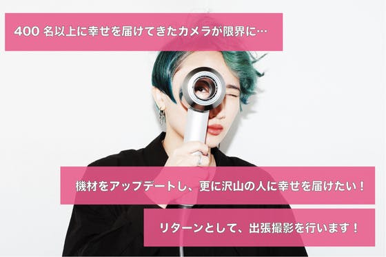 これまで400名以上の方と写真を通して交流をし、そして幸せを届けてきました。その幸せを届けてくれた機材は、7年目を迎え、納得のいく写真を届ける事が難しい状況です...