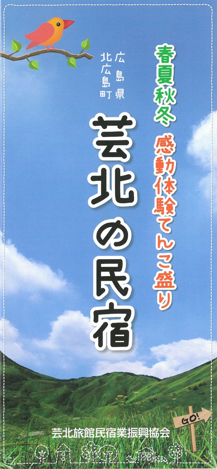 芸北旅館民宿業振興協会は、北広島町芸北地区の宿を会員とする団体です。 当会会員の宿(芸北の宿)は、四季折々の自然を楽しまれるお客様にご利用いただいてきたのですが、”重なる”至難により、今、長い苦境に立たされています。 この時をなんとか乗り切り未来に繋げたいと、今回のプロジェクトに参加しました。12年来取り組んできた体験宿泊受け入れの実績を礎に、お得な宿泊プランをご用意いたしました。 溢れる自然がお出迎え、各宿まごころでおもてなしいたします。まずは芸北へのお越しをお待ちしております。