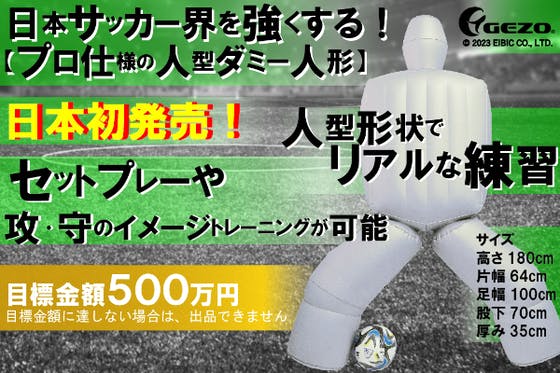 サッカーJリーグの監督やコーチの皆様から要望のあった股開きした人型のダミー人形を開発、商品化するための初期費用の調達。ヨーロッパの強豪クラブや代表チームでは使用...