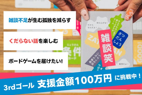 孤独や対話不全に悩む親子や若者たちへ。大切な人を孤独にさせないために、ボードゲームをつくりました。関係性を育むボードゲームを通じて、雑談不足が生む孤独を減らした...