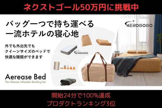 ①海外クラファンで$46,063(700万円以上)を売り上げた世界中で注目の“持ち運べる一流ホテルの寝心地” AEREASE BED ②3分で完成して3分で小さ...