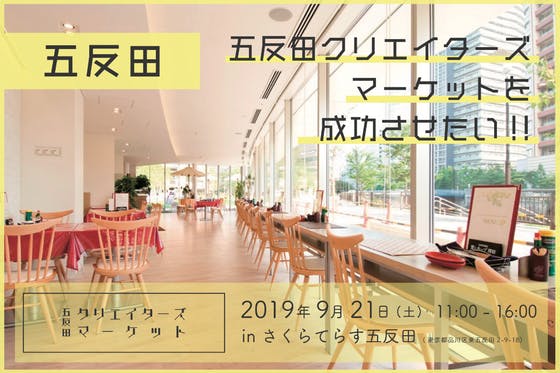 2019年9月21日に東京・五反田で開催される「五反田クリエイターズマーケット」。たくさんの自己表現と出会える場所を作りたい!そして、出店者の方は自分の作品をた...