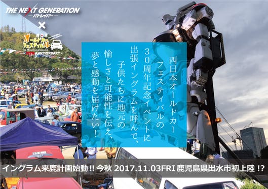 鹿児島県出水市で開催している『西日本オールドカーフェスティバル』。 今年の11月3日に開催される30周年大会を記念して、出張イングラムを呼び、 子供たちに地...