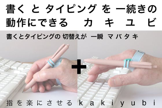 「カキユビ」は今までなかった書くための道具です。「書く」と「タイピング」の別々な動作を一続きの動作にできます。タイピングの邪魔にならずにペンを手に置き、ペンを取...