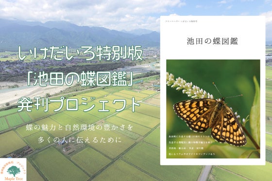 長野県池田町は市街地や雑木林、河川敷、草原など多様な自然環境に116種の蝶が生息する地域です。2015年から有志の地域団体が発行しているフリーペーパー「いけだい...