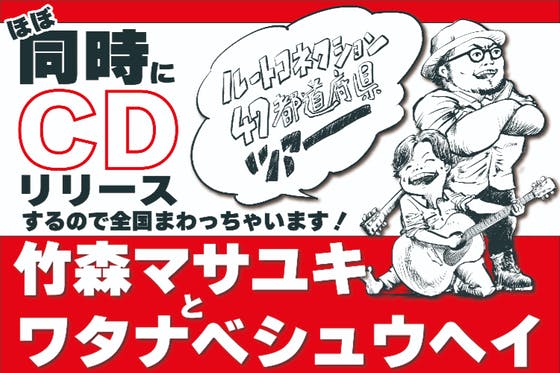 竹森マサユキ(カラーボトル)とワタナベシュウヘイ(Play.Goose)がそれぞれ新譜アルバムと新譜ミニアルバムを持って、47都道府県2マンライブツアーを開催!...