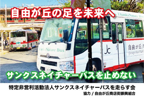 「自然さん、ありがとう」をコンセプトに自由が丘の街を走る運賃無料のサンクスネイチャーバスです。累計 230万人もの乗客数を超え、多くのサポーターと地域の皆様に支...