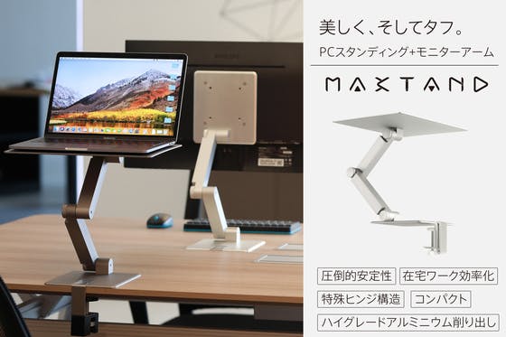 MAXTANDは航空機にも使用されるハイグレードなアルミから削り出しで作られるモニター+PCスタンディングアーム。削り出しでパーツを少なくし、特殊ヒンジ構造を採...