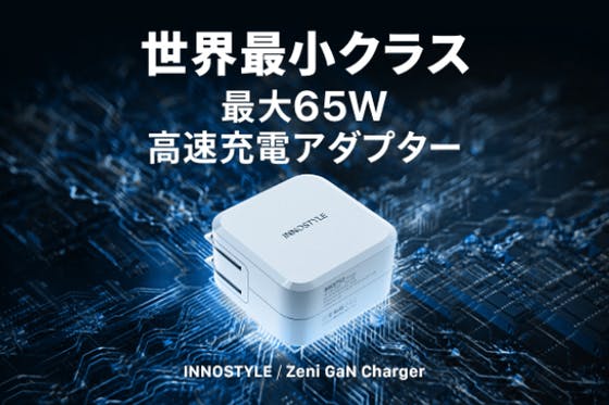 NNOSTYLE(イノスタイル)から新発売された「Zeni GaN Charger」は、カードサイズの1/2の小型サイズで最大出力65W(USB-A/USB-C...