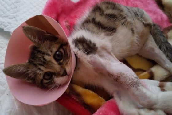 人に踏まれてうずくまっていた子猫のハコちゃんをコンビニで保護しました。 後ろ足と骨盤を骨折しており、内臓を傷つける可能性が高いため治療が必要です。 手術費と治療...