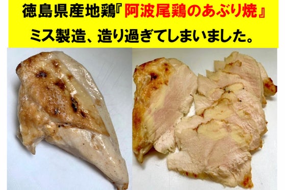 徳島県産の地鶏『阿波尾鶏』ムネ肉の炙り焼。 受注数の倍の数量を製造してしまいました。 挙句に本来なら表面を炙り真空調理でローストし味付け無しの依頼を、どうゆ...