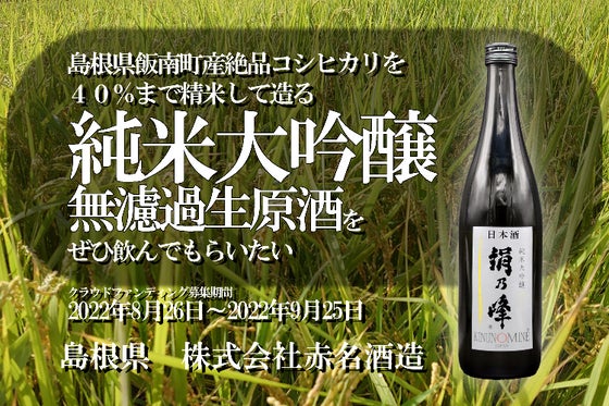 赤名酒造は島根県にある2014年11月に復活した酒蔵です。良質な米を使用し純米酒のみを製造しています。ところがこの度のコロナ禍で酒蔵、米農家、地域産業が非常に影...