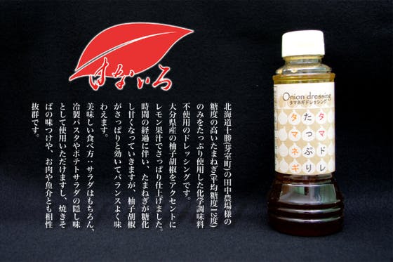 北海道十勝の田中農場様の糖度の高いたまねぎ(平均糖度12度)のみをたっぷり使用した化学調味料不使用のドレッシングです。大分県産の柚子胡椒をアクセントにレモン果汁...