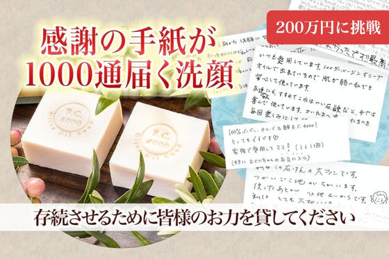 この度はクラウドファンディングの支援いただきありがとうございます。引き続き肌に徹底的に向き合いやさしい石鹸をつくっていきます。今後ともよろしくお願いいたします。