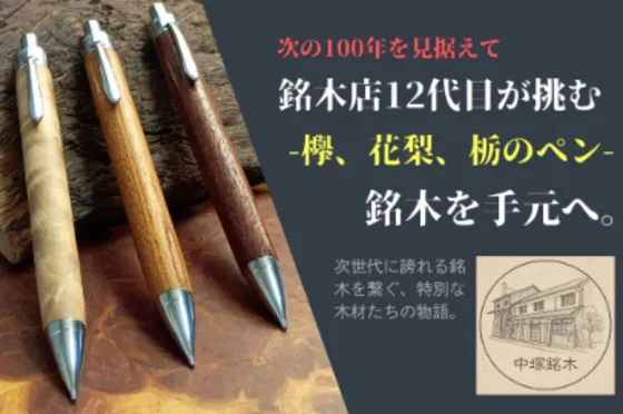 岡山の老舗中塚銘木店が挑む新たな挑戦。戦後から守り続けてきた貴重な銘木たちを、日常で使える木軸ボールペン・シャーペンとして蘇らせます。225年の歴史と職人技が生...