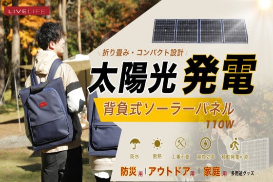 持ち運びラクラク、人間工学に基づいた負荷軽減設計の軽量【リュック型太陽光発電ソーラーパネル】、ライフスタイルに溶け込む省スペースデザイン。