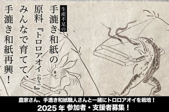和紙の特徴である薄くて強い紙が作れるのは原料”ねり(トロロアオイ)”をつくる農家さんがいなくなる。農家さん、職人さんと繋がり、みんなで育てる参加型の「わしのねり...