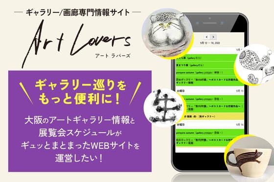 大阪のギャラリー巡りをもっと便利に!スケジュールがエリアやジャンルごとにまとまったカレンダーで今やっている展示が一目でわかるWEBサイト「Art Lovers」...