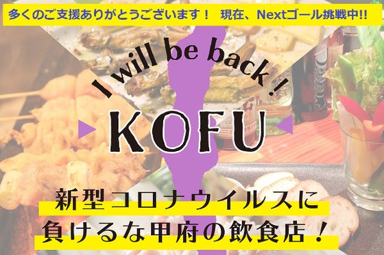 I will be back! 愛する甲府の飲食店等緊急応援プロジェクトは、厳しい状況にある甲府市及びその周辺の飲食店や宿泊施設を「応援したい・応援してほしい」...
