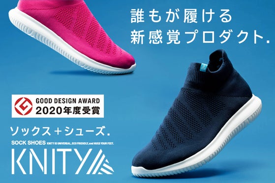 グッドデザイン賞受賞の新感覚プロダクト『KNITY』(ニッティー)。誰もが履ける、新感覚プロダクト。73年の歴史を持つ、広島県福山市の老舗シューズメーカーが既成...