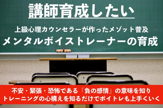 認知行動療法をベースにした「思考コントロール」と「本格ボイストレーニング」を融合した【メンタルボイストレーニングメゾット】を広め、声や感情に苦しむ人々の役に立て...