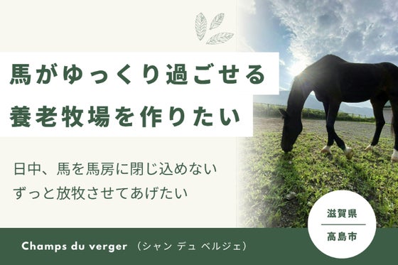 日中、馬が厩舎にいる時間を減らしたい。長時間放牧させて馬をいきいきとさせてあげる。またそれを見て人もゆっくりできる牧場を作りたいです。滋賀県高島市マキノ町で、馬...