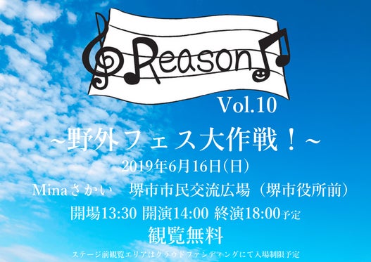 決して何万人規模のイベントではないけれど、自分たちのできる形で音楽を届けたい。無料開催への挑戦!2019年6月16日(日) Reason♫Vol.10 〜野外フ...
