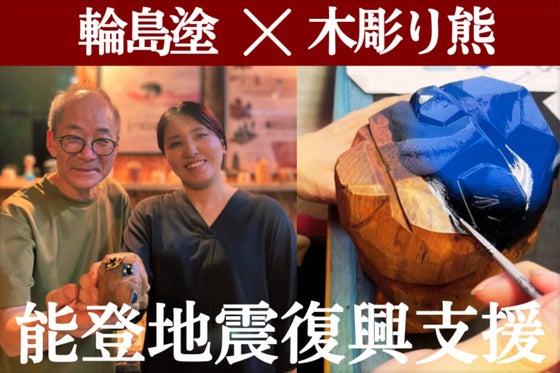 石川県輪島市にある輪島塗の復興支援のため、北海道八雲町の木彫り熊とのコラボ作品を作成いたします。木彫り熊の職人さんが制作した木彫り熊に、輪島塗が施され、「わじま...