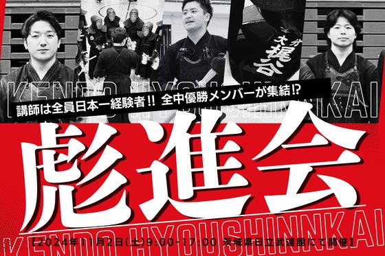 試合で勝ちたい、強くなりたい剣士に全力で応え、共に進む「彪進会」を茨城県で開催︎!プロ剣道家 梶谷彪雅が中学時代に全中団体優勝を果たした当時のメンバー、河村晋之...