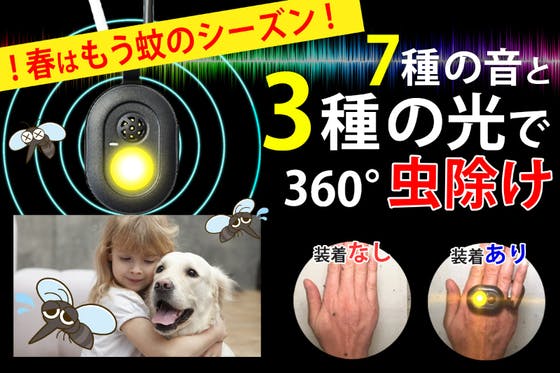 ① 薬剤不使用 ② 臭いなし ③ 環境に優しい ④ 高齢者や子供、妊婦、ペットにも安心 ⑤ 7種類の音+3種の光であらゆる虫に対応 ⑥ 全方位に虫よけ効果を発揮