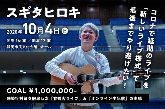 静岡在住のシンガーソングライター・スギタヒロキです。コロナで延期になった自身初のホールワンマンライブを「新しいライブ様式」=「生ライブ」+「生配信」で開催するた...