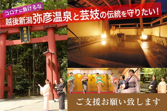 このプロジェクトは、新型コロナウイルスの感染拡大により深刻な影響を受けている、越後一の宮『彌彦神社』の門前にある『弥彦温泉』と『芸妓』の文化を後世に残すために、...