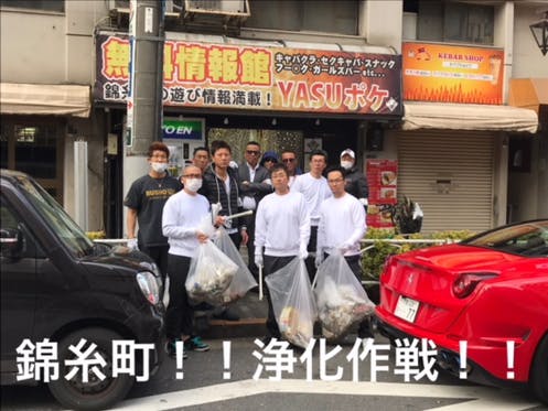 スカイツリーのお膝元でもある錦糸町で気持ち良く遊んで頂く為、街の清掃活動、あわせて治安改善活動をしています。