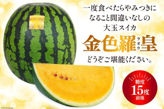 金色羅王スイカ。 その糖度は15%を超え、糖度20%になることも。2025年4月ごろスイカ畑を拡大する予定。その為に必要な農資材資金を集めたい。