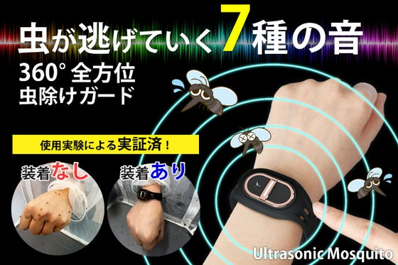 ① 薬剤不使用 ② 臭いなし ③ 環境に優しい ④ 高齢者や子供、妊婦、ペットにも安心 ⑤ 音波で蚊の感覚を効果的に妨げ ⑥ 全方位に虫よけ効果を発揮