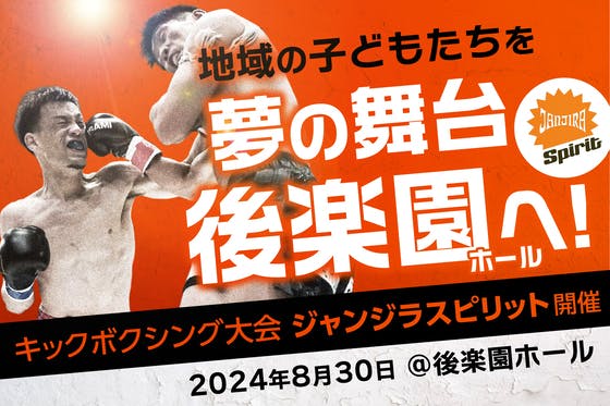 2024年8月30日に後楽園ホールでキックボクシングの大会「ジャンジラスピリット」を開催します。格闘家にとって夢の舞台である後楽園ホールに、地域の子どもたちを招...