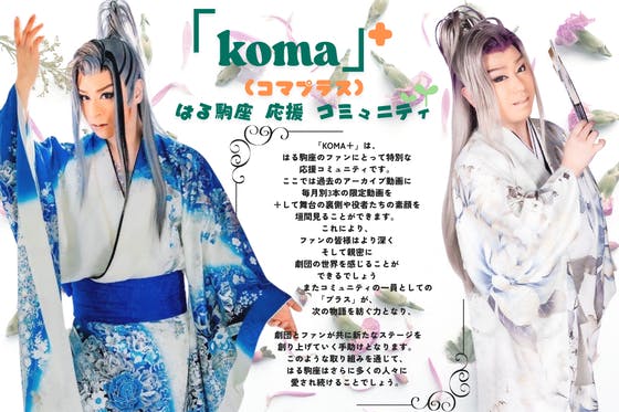 「KOMA+」ファンにとって特別な応援コミュニティです。過去のアーカイブ動画に毎月別3本の限定動画を+して舞台の裏側や役者の素顔を垣間見ることができより深くそし...