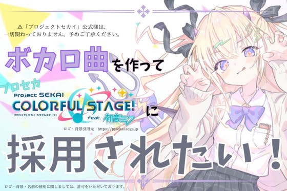 人気ゲームアプリ「プロジェクトセカイ カラフルステージ! feat. 初音ミク」に採用されるようなボーカロイド曲を作りたいです。