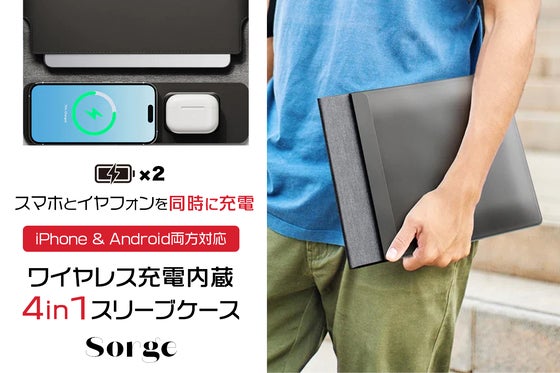 充電器・スリーブケース・デスクマット・マウスパッド…すべての機器をひとつに。スタイリッシュでスリムなワイヤレス充電付きスリーブケースが登場!撥水加工でアウトドア...