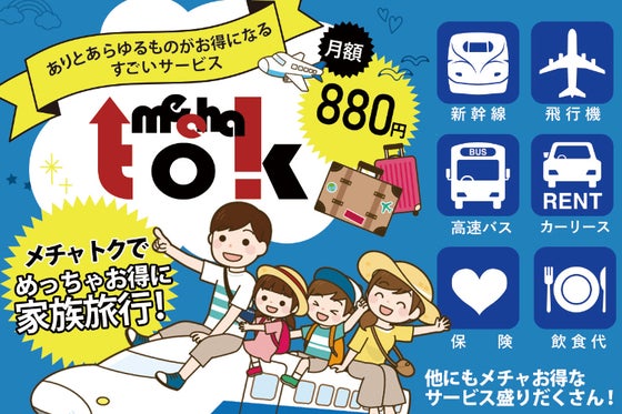 【メチャトク】会員35万人突破!新幹線や飛行機など出張や家族旅行の交通費を大幅に安くでき、他にも生活のありとあらゆるものをお得に利用できます。一般的に安くならな...