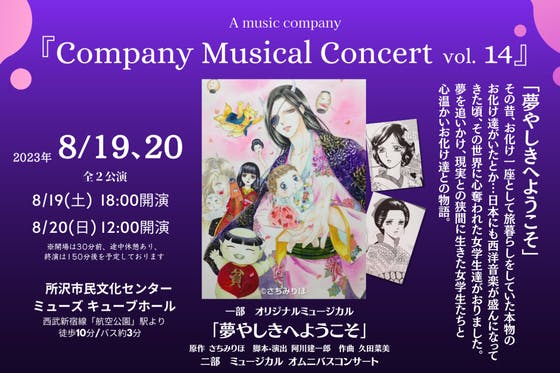 2023年8月19、20日に上演予定のミュージカル「夢やしきへようこそ」と、同じ日に上演する企画コンサートが無事に公演出来るようご支援をお願いしたくプロジェクト...