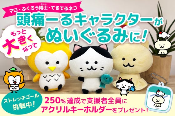 気象病対策アプリ『頭痛ーる』のキャラクター『マロ』『ふくろう博士(ひろし)』『てるてるネコ』のぬいぐるみ化プロジェクト第2弾が始動! 200件近くのリクエストと...