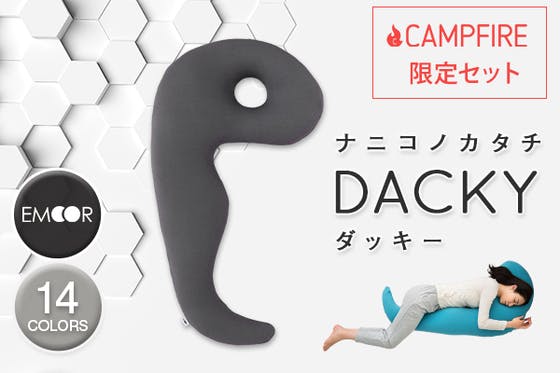 【CAMPFIRE限定セット】テスト販売時、たったの2週間で完売してしまった抱き枕「Dacky ダッキー」 ナニコノカタチ?100人が気持ちいいと感じるカタチを...