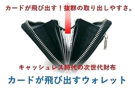 カード時代に対応したカードが主役の財布。財布を開けると、カードがポップアップするように飛び出すのでカードが見やすく取り出しやすい非常に便利な財布。まさにキャッシ...